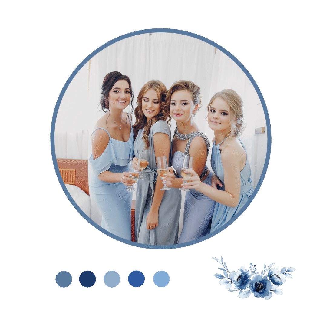 Vestido no modelo de sua preferência na cor Azul, nos tons sugeridos na paleta de cores.