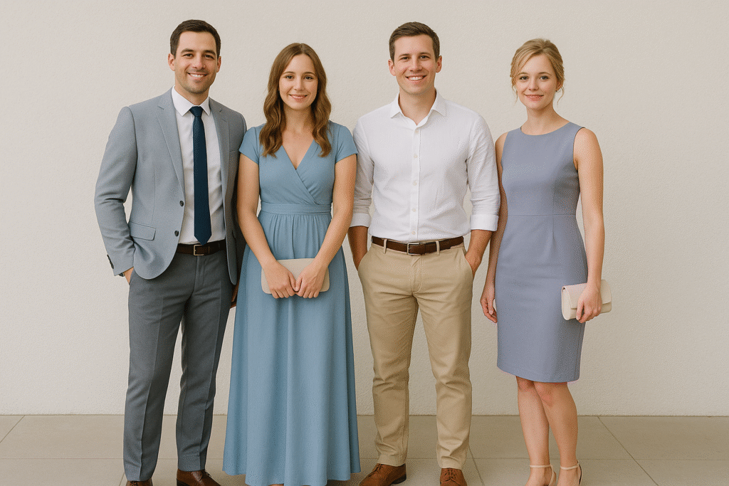 Terno Cinza, Camisa branca e gravata de tonalidade azul
